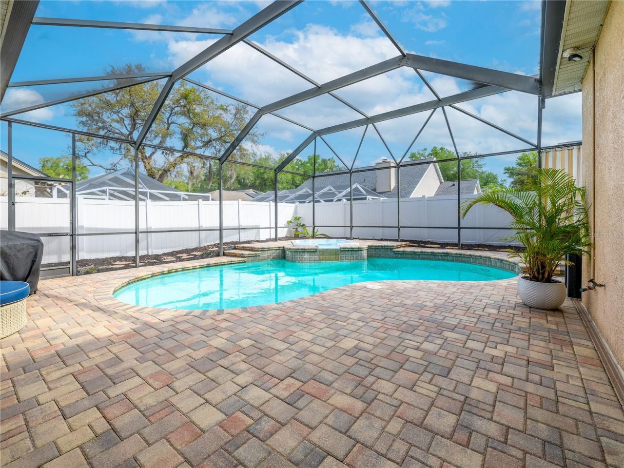 This beautifully maintained 4-bedroom, 3-bath, single-story POOL HOME is the popular Cambridge model built by Lennar and located inside the village of The Enclave in the highly sought-after community of Tampa Palms. At 2,418 sq ft, this home offers a SPACIOUS open layout with a split-bedroom floor plan, high ceilings, crown moulding throughout, providing FLEXIBLE living spaces designed for both everyday COMFORT and EASY entertaining. The kitchen features GRANITE countertops, stainless steel appliances, GAS COOKTOP, generous prep space WITH STORAGE, and bar seating overlooking the family room and screened pool/spa area. The private primary suite is oversized with a sitting room adjacent perfect as a home office, exercise area, or quiet reading area. The UPDATED ensuite includes a large bath with soaking tub, walk-in shower, and dual vanities. Step outside to your screened lanai with pavers & enjoy the POOL and spa. With an extra seating area, this is the ideal setup for relaxing weekends, outdoor dining, or hosting friends and family. The charming front porch, mature landscaping, and 2-car garage add to the home's curb appeal. Updates include NEW gas water heater (2026), Refrigerator (2025), Roof (2015), AC (2015). TAMPA PALMS delivers a lifestyle and value that is hard to beat in Tampa! You're choosing an ESTABLISHED NEIGHBORHOOD with GREAT SCHOOLS, community parks, optional country club membership, PLENTY of green space, and a true community feel made even better by the nearby New Tampa Performing Arts Center, bringing LOCAL THEATER and year-round arts programming to the area. If you want to get out of the house and want some OUTDOOR FUN, you're super close to Flatwoods Conservation Park, where you'll find walking trails, biking, and room to enjoy Florida without being packed on top of everybody else. FLATWOODS includes multiple access points and is known for its paved multi-use trail system, while New Tampa Nature Park connects into that broader trail network. DINING OPTIONS are strong too with well-known local favorites like Stonewood Grill & Tavern, Don Julio's Authentic Mexican Cuisine, Liang's Bistro, Via Italia, and many other great restaurants within a 2 mile radius. Daily errands are made easy with Publix, Aldi, Sprouts, BJ's, Super Target, and Walmart Supercenter nearby, and when it is time for a little serious retail therapy, both The Shops at Wiregrass and Tampa Premium Outlets are just a SHORT DRIVE away. Medical facilities are also abundant with Advent Health, Moffitt and the James A. Haley VA center just minutes away. With EASY access to I-75, I-275, I-4, and S.R. 56/54, you are never too far away from work or fun. Schedule your private tour today.